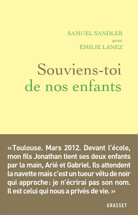 « Ce livre est une stèle pour mes trois enfants. Que leurs visages, leurs mains, leurs sourires, leur innocence, ne s’effacent jamais de nos mémoires et que leurs prénoms y soient toujours chéris. J’aimerais que l’histoire de Jonathan, Gabriel et Arié nous habite, fraternelle et sensible. Dans mon cœur, ils vivent. La douleur ne triomphera pas du souvenir. »